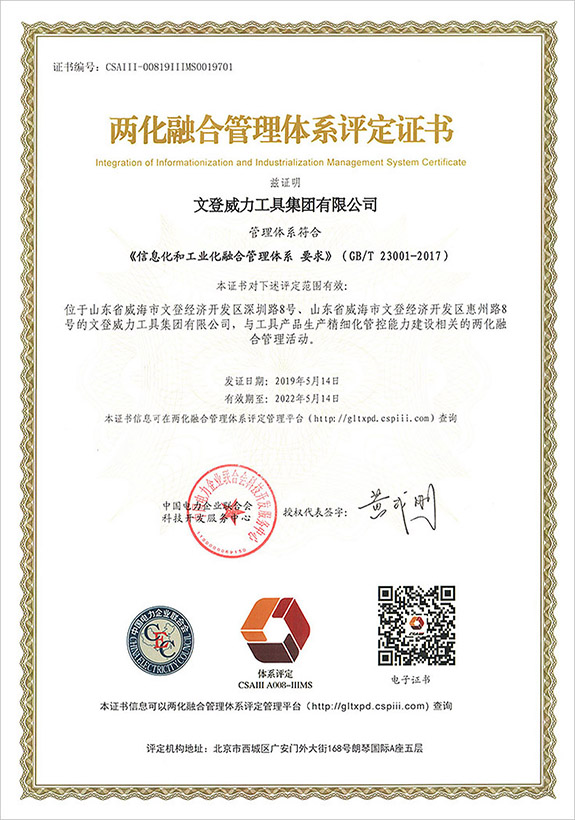 兩化融合管理體系證書